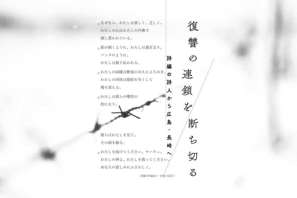 終戦から79年目の8月を迎えます。侵略戦争の過ちを認めて反省することが自虐史観と言われることすらなくなるほどに、かの戦争が正当化され、アジア周辺諸国に対する呪いが復讐の連鎖のように日常に侵食しています。呪いと復讐の連鎖が観念ではなく、現実になるとき、それはガザやウクライナで起こっている現実のように、人の生命は血と肉塊になり、跡形もなく消し飛ぶ阿鼻叫喚が目の前に広がるのです。その最も非道な現実を経験した被爆地の広島と長崎が、呪いと復讐に身を委ね、死と戦争の影に飲み込まれてしまっていたとしても、おかしなことだったとは言えません。しかし、広島と長崎は二度と核兵器が使用されることのないように求め、二度とあの過ちを繰り返さないように願い続けています。その姿は復讐の連鎖を断ち切ろうとする詩編の詩人と重なり、死と戦争の影に飲み込まれてしまいそうな自分に呪いと復讐の連鎖を断ち切るよう迫っているように思えるのです。(小林昭博/酪農学園大学教授・宗教主任、デザイン宗利淳一)