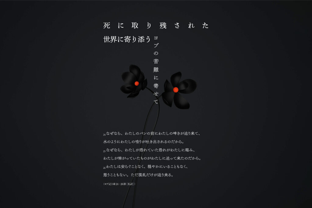 友人とわたしは同じ年齢であり、それゆえ同じような経験をするお年頃なのかもしれません。ヨブのように神の不条理と神の不在による実存の危機を感じたわけではありませんが、ヨブも身近な人たちの死に身が引き裂かれ(ヨブ記1章20−21節)、死ぬことが許されない我が身を呪っています(ヨブ記3章1−23節)。死に取り残されて生きていかざるを得ないヨブは「単体の死、みたいな、漠然とした死という、なにか黒光りするようなものが、詰め込まれていく感じ」に襲われていたのです。それゆえ友人はヨブに共鳴したのではないかと勝手に想像をめぐらせています。そのように考えると、友人が戦禍の地に思いを寄せ続けてきたのもまた、戦禍の地で命を奪われた人たちのひとりひとりに「単体の死、みたいな、漠然とした死という、なにか黒光りするようなものが、詰め込まれていく感じ」に胸を締めつけられていたからではと感じるのです。そして、それは戦禍にある地だけの問題ではなく、友人が見送り続けてきた身近な人たちの「死」にも共通する問題であり、わたし自身が拭いきれない叔父の「孤独死」にも通底する問題でもあります。死を弔うこともまた宗教の重要な役割であることは重々承知してはいますが、それ以前に不条理や神の不在の死に満ちた世界を変えるために力を尽くし、ヨブのように死に取り残されて「安らぐことなく、穏やかにいることもなく、憩うこともない。ただ混乱だけが迫り来る」世界を生きざるを得ない人たちに寄り添うこともまた、キリスト教が果たす重要な役割だと言えるのではないでしょうか。