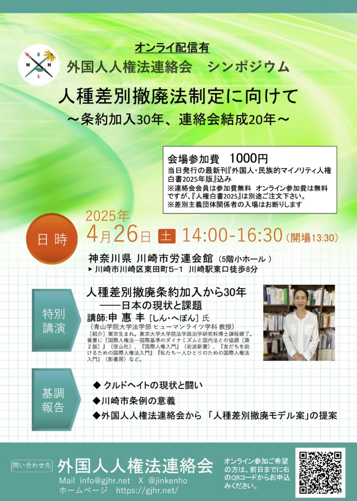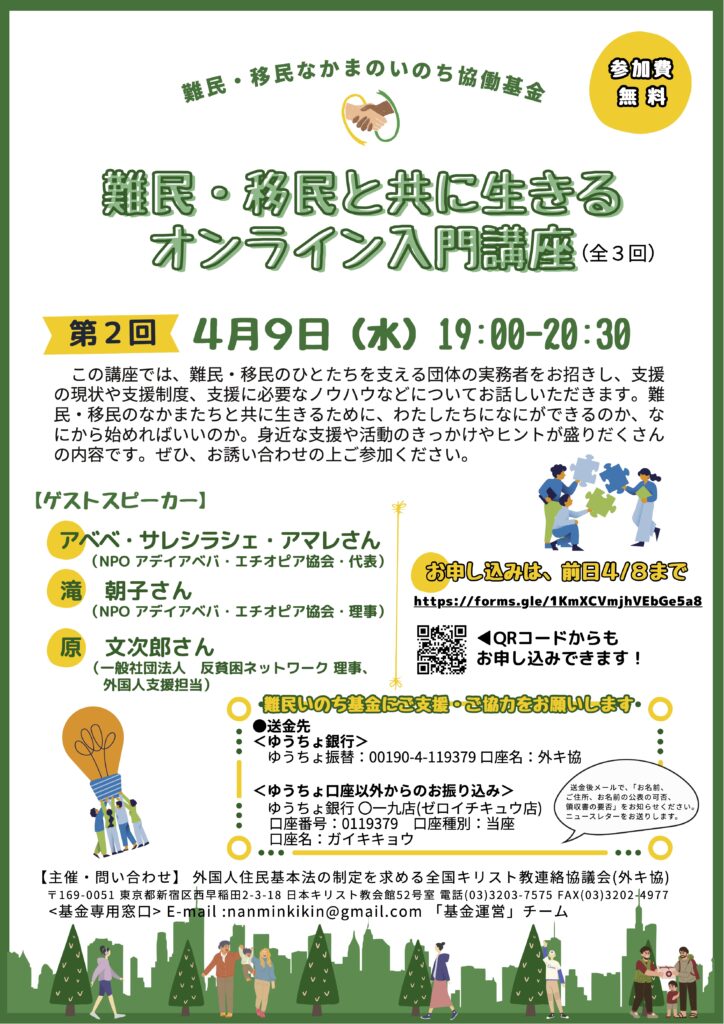 外キ協(外国人住民基本法の制定を求める全国キリスト教連絡協議会)からのお知らせ