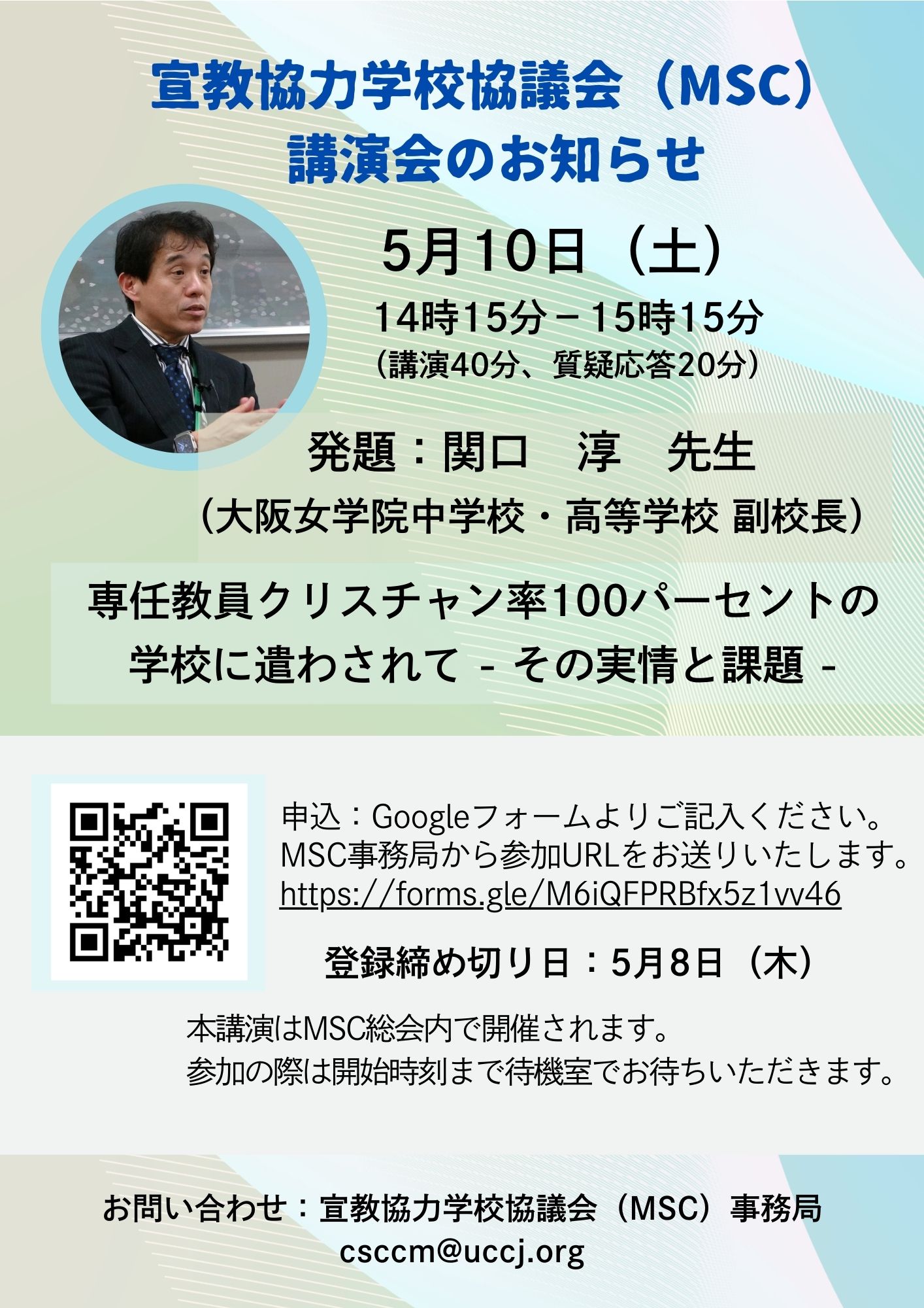 宣教協力学校協議会(MSC)から講演会のお知らせ